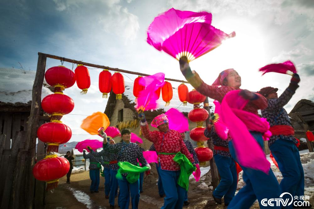 村民纷纷走出家门,载歌载舞尽情欢乐。
