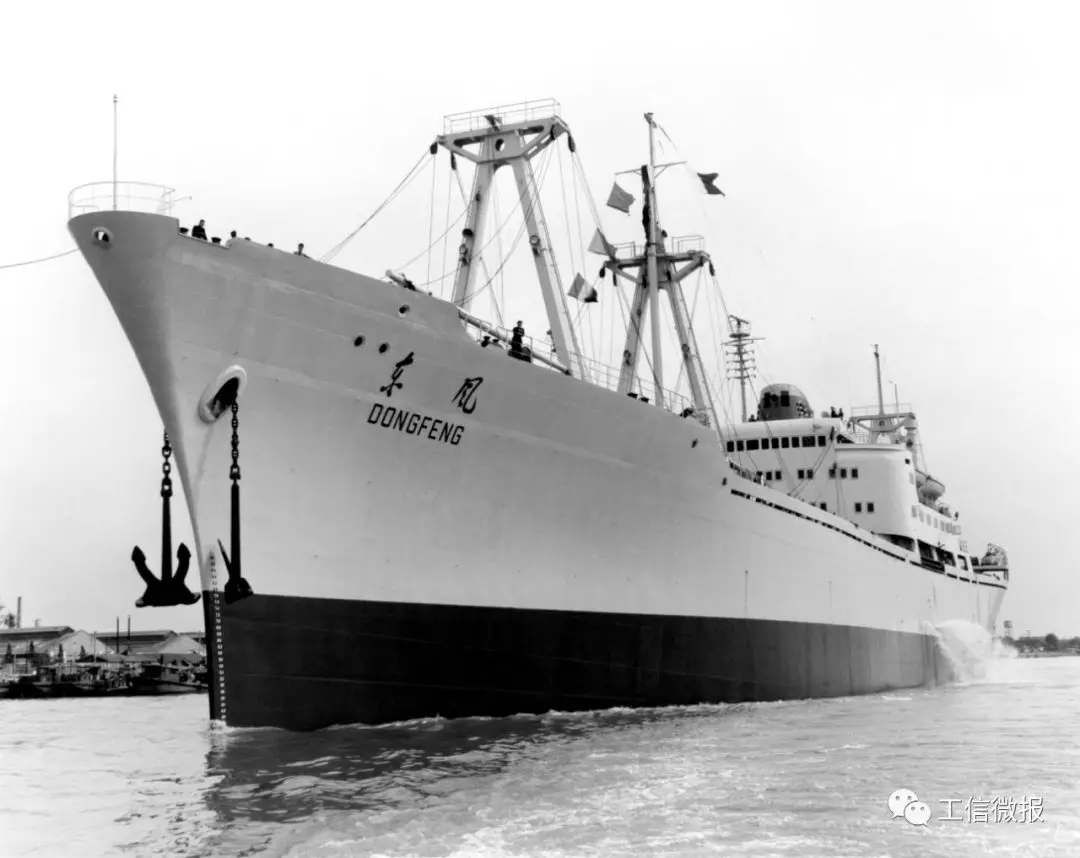 1960年4月,中国第一艘自行设计、采用国产材料和设备制造的“东风”号万吨级远洋货轮下水。标志着中国造船工业上了一个新台阶。