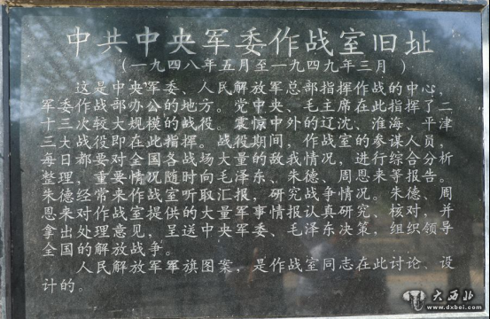 也正是在这低矮的土砖房里,毛泽东、周恩来、朱德等老一辈无产阶级革命家指挥了24场战役,打出了一个新中国。