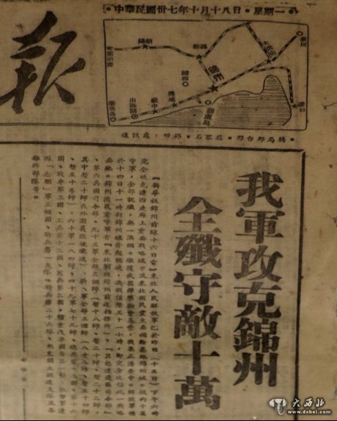 1948年10月18日,《人民日报》关于解放军攻克锦州全歼守敌十万的报道。翻拍自西柏坡纪念馆