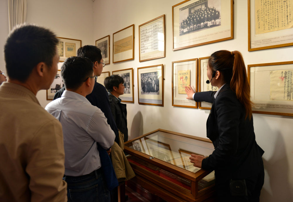 观众在讲解员的引导下参观北大红楼(4月17日摄)。新华社发(任超摄)