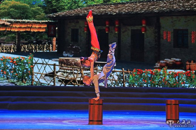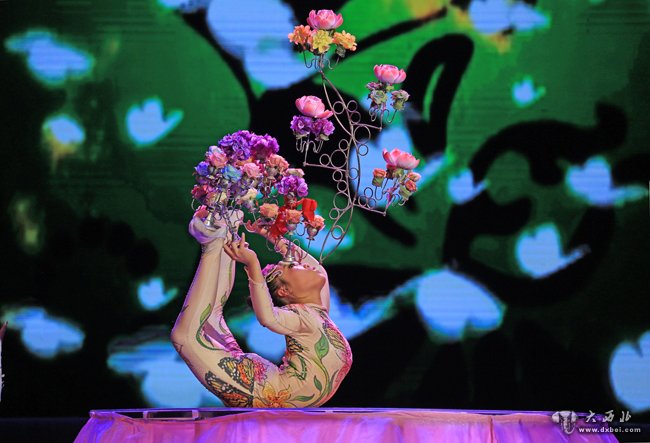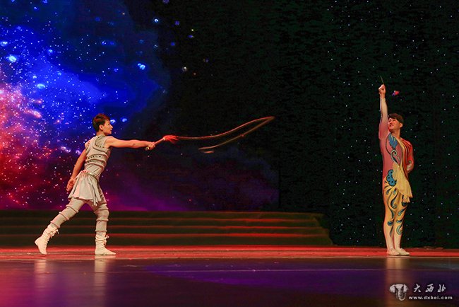 杂技魔术秀《多彩民族风》剧照——鞭打花落。 贾笑云 摄