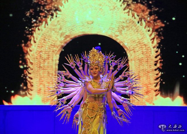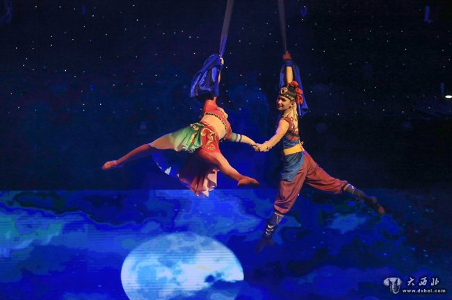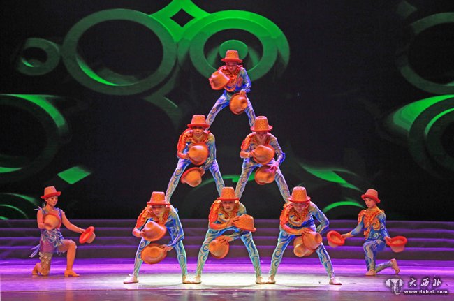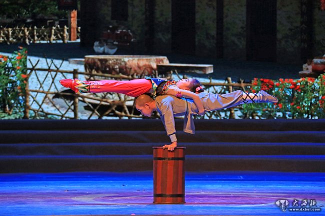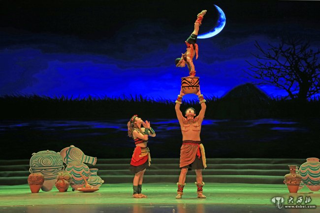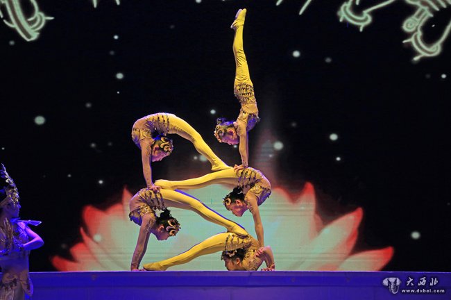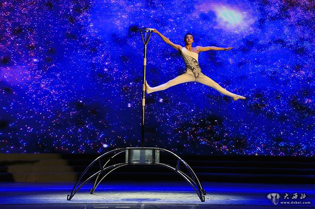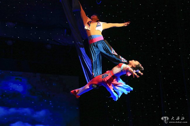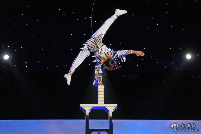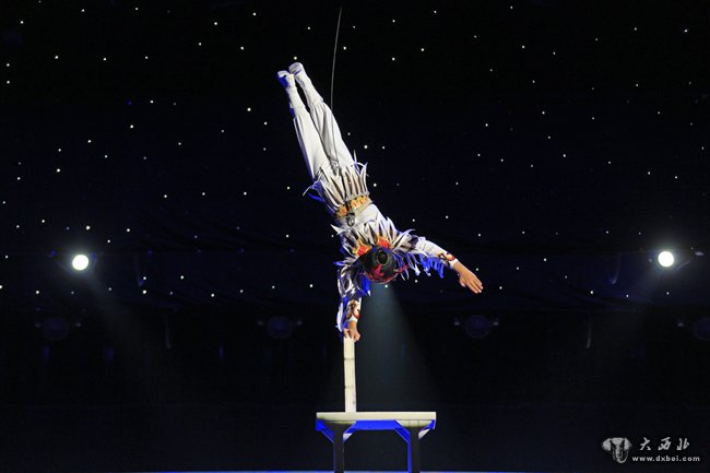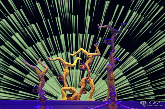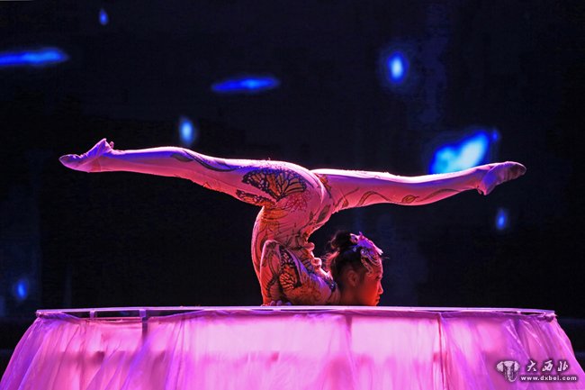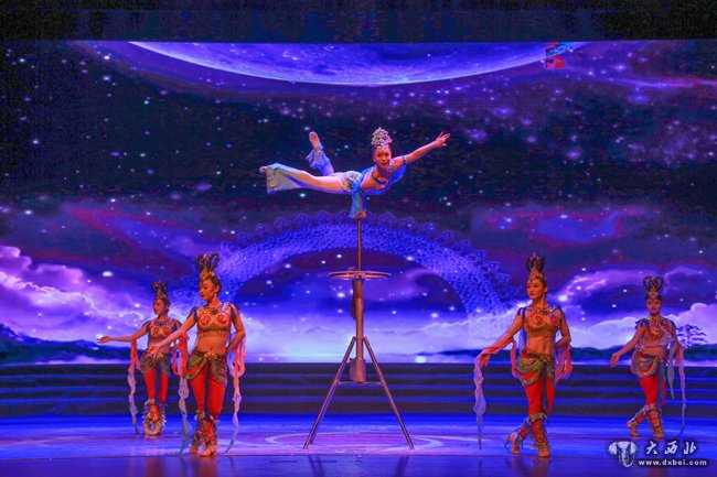 甘肃演艺集团敦煌艺术团演出中国经典杂技魔术秀《多彩民族风》剧照。 贾笑云 摄