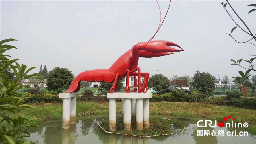 盘龙岭村的小龙虾雕塑。 摄影 程亚惠
