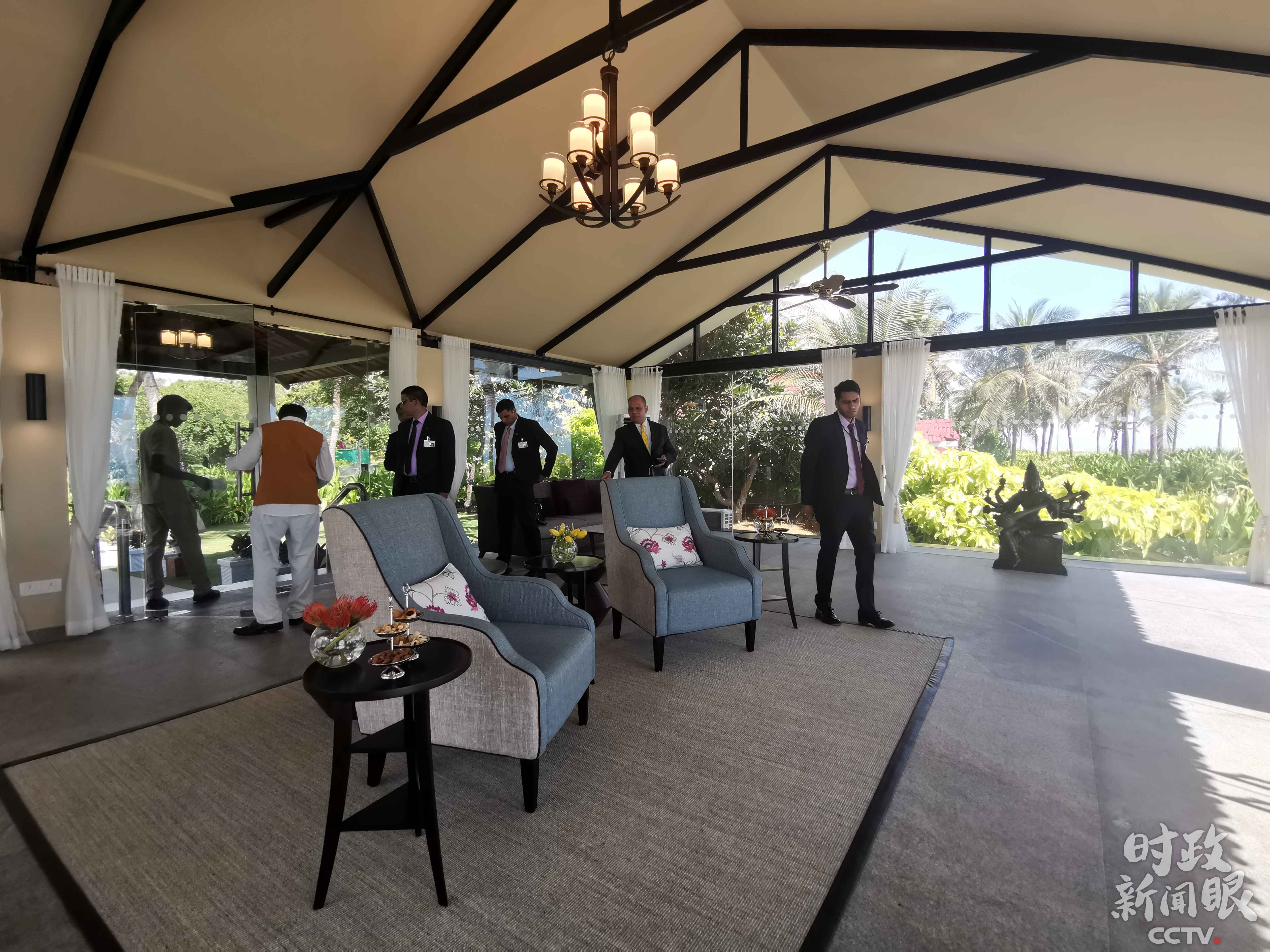 △在海滩观景小屋交流之后,两位领导人还走到室外,坐在这里凭海临风,继续畅谈。(央视记者李辉拍摄)