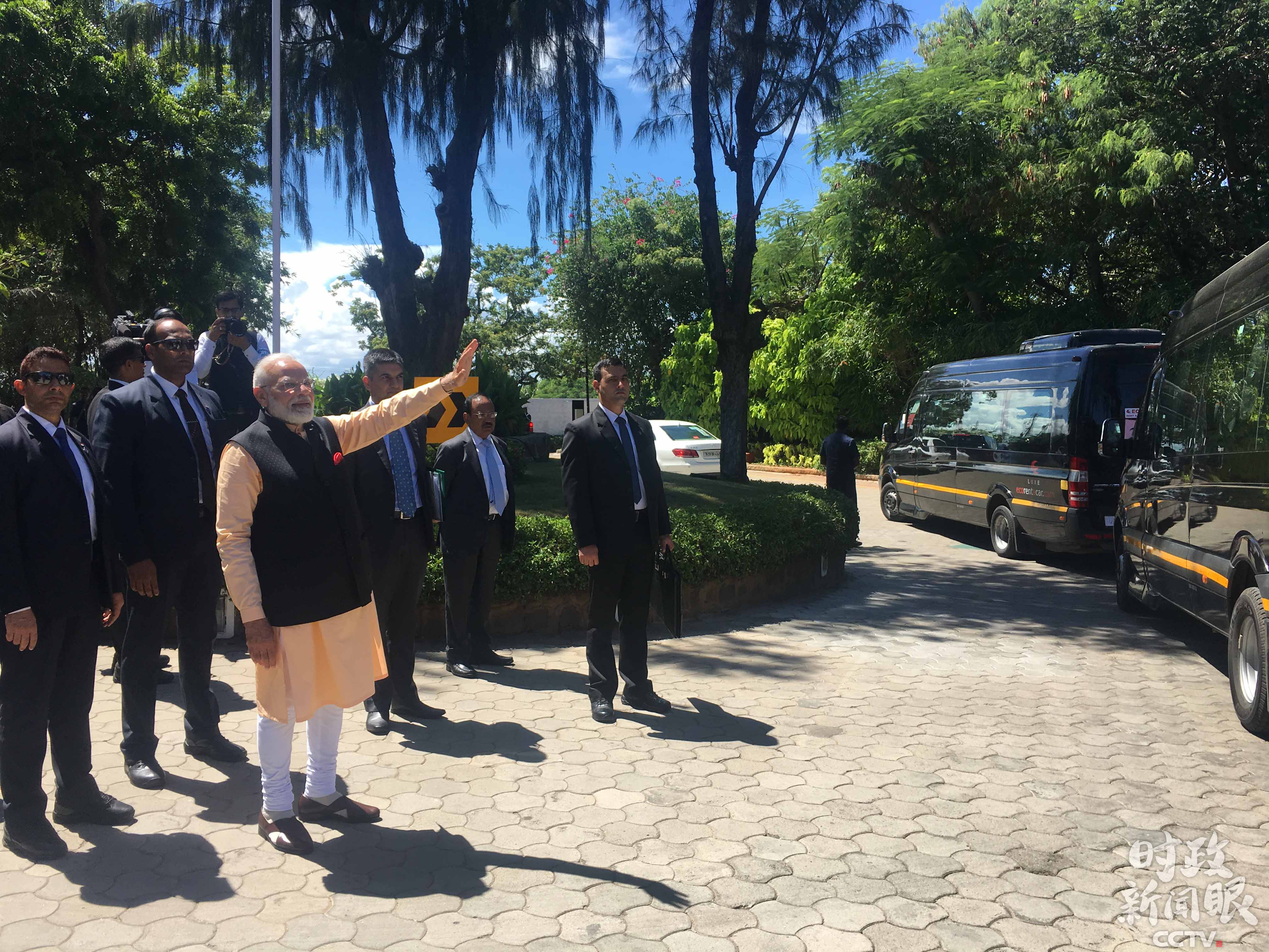 △这是会晤结束后,莫迪挥手为习主席车队送行。(央视记者李辉拍摄)
