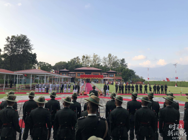 班达里总统在机场为习近平举行了具有浓郁尼泊尔民族特色的欢迎仪式。尼泊尔副总统、总理、联邦议会联邦院主席以及在加德满都的所有内阁成员都参加了仪式。