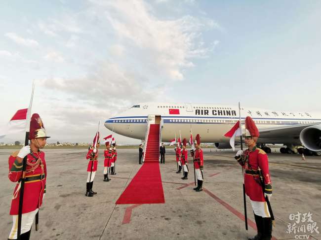 当地时间10月12日下午,习近平乘专机抵达尼泊尔首都加德满都,开始对尼泊尔进行国事访问。