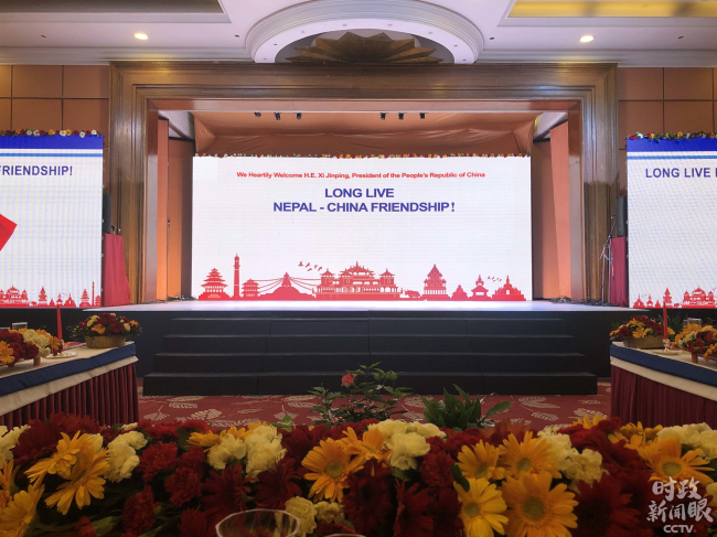 △在“尼中友谊长长久久”的祝福中,欢迎晚宴即将开始。(央视记者马亚阳拍摄)