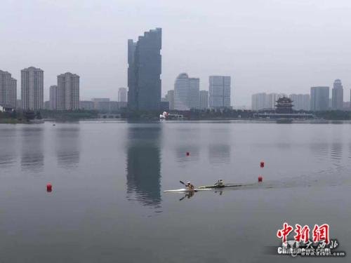 皮划艇运动员在迪荡湖上进行练习。 冷昊阳 摄