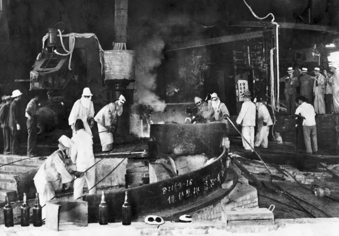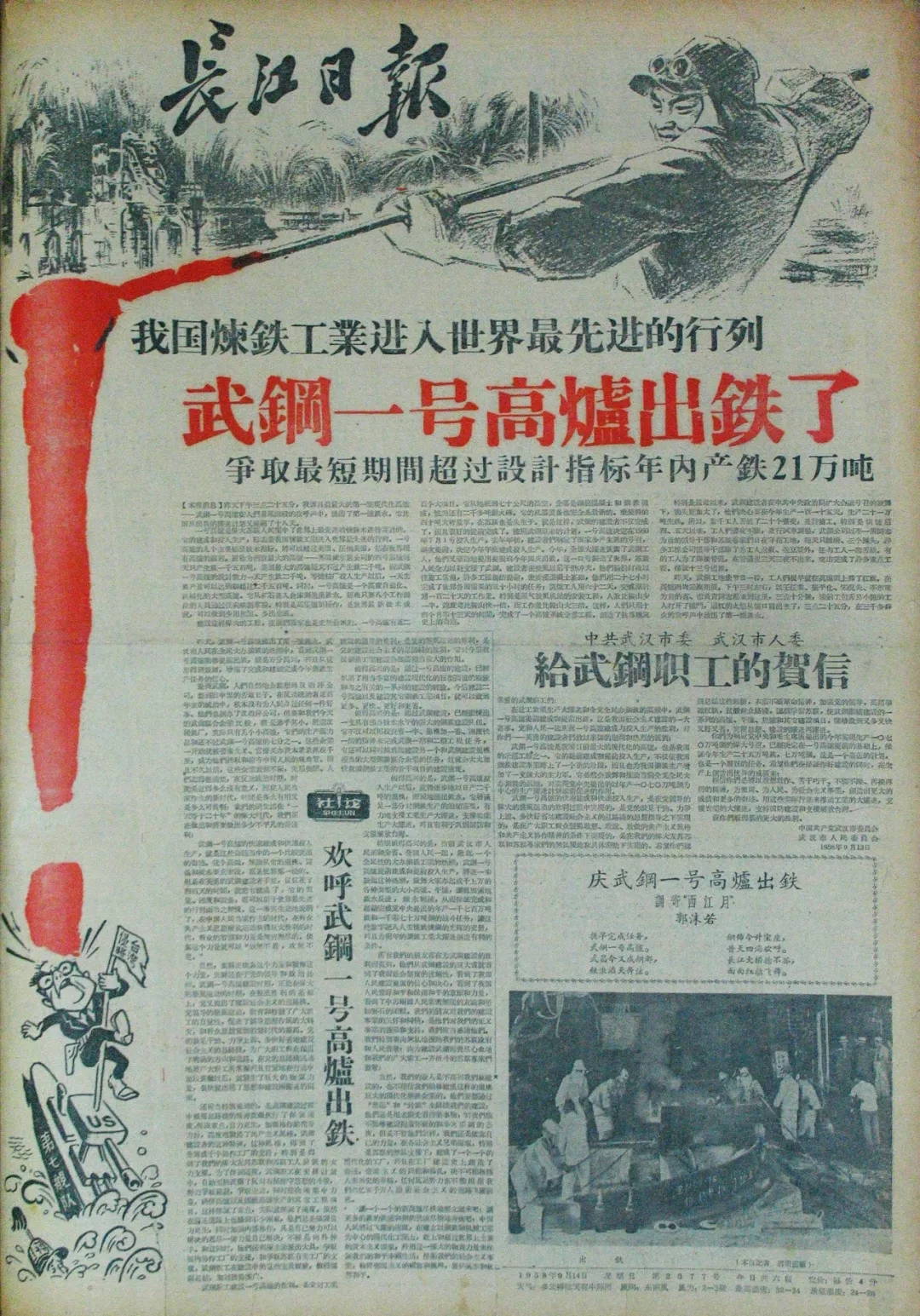 1958年9月13日,新中国建成的第一个大型钢铁基地中的第一座大型高炉,流出了第一炉铁水,3000多名武钢职工和各界群众沸腾了。