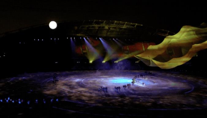 整场开幕式以“和平的薪火”为主题,以“止戈为武”的中国传统军事思想来传递中华儿女自古以来追求和平的愿望。开幕式还采用了世界最大的全三维立体式舞台,大面积使用投影,打造立体多维沉浸式体验,展现东方文明的底蕴和当代中国的勃勃生机。