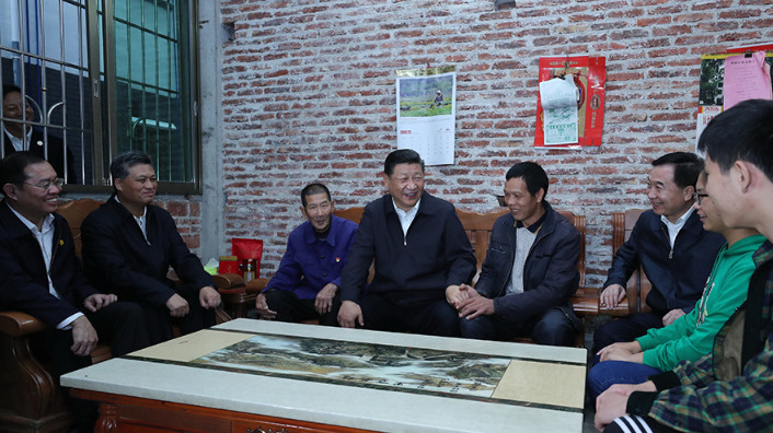 △2018年10月23日下午,习近平在英德市连江口镇连樟村贫困户陆奕和家,同他们亲切地拉家常。
