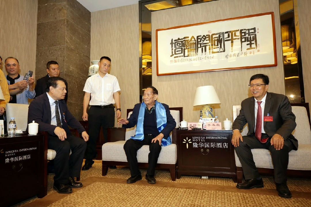 袁隆平院士在与内蒙古自治区及兴安盟领导进行会谈。