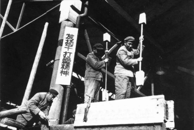 “干打垒”是一种简易的筑墙方法,在两块固定的木板中间填入黏土,用这种方法盖起的简易房子。大庆石油会战刚刚打响时,几万人和家属就居住在“干打垒”里。从大庆到十堰,相同的干打垒,相同的精神。