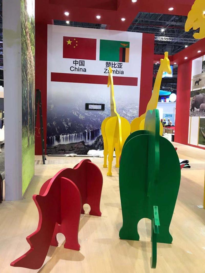 或许你还不知道,国家展中还“藏”着一个小小“动物园”,就在赞比亚展台!赞比亚展台内部丰富的色彩激烈碰撞,设置了许多赞比亚特色动物的雕塑,使整个设计显得生气勃勃、充满趣味。同时赞比亚展台也带来了许多当地的特色产品,供观众参观赏玩。