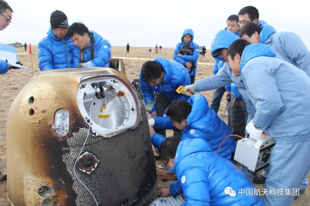 ▲探月工程三期再入返回飞行试验器返回舱着陆
