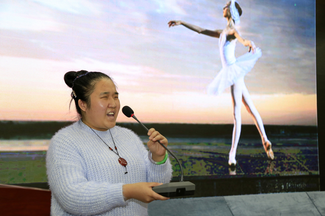 甘肃省 “时代新人”吴小燕在作励志报告。 贾笑云 摄