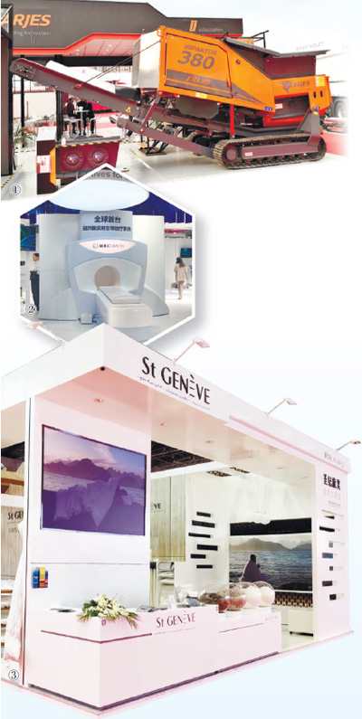 图②:在医疗器械及医药保健展区,展出的全球首台磁共振实时引导放疗系统。