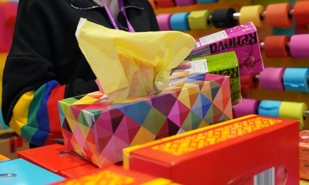 11月9日,这是进博会现场展示的原产自葡萄牙的彩色纸巾。新华社记者陈倩摄