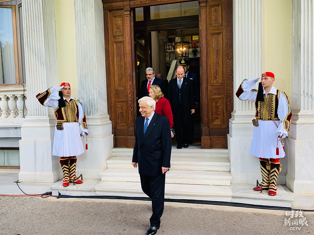 △希腊总统帕夫洛普洛斯准备迎接习主席夫妇。(央视记者郭晗光拍摄)