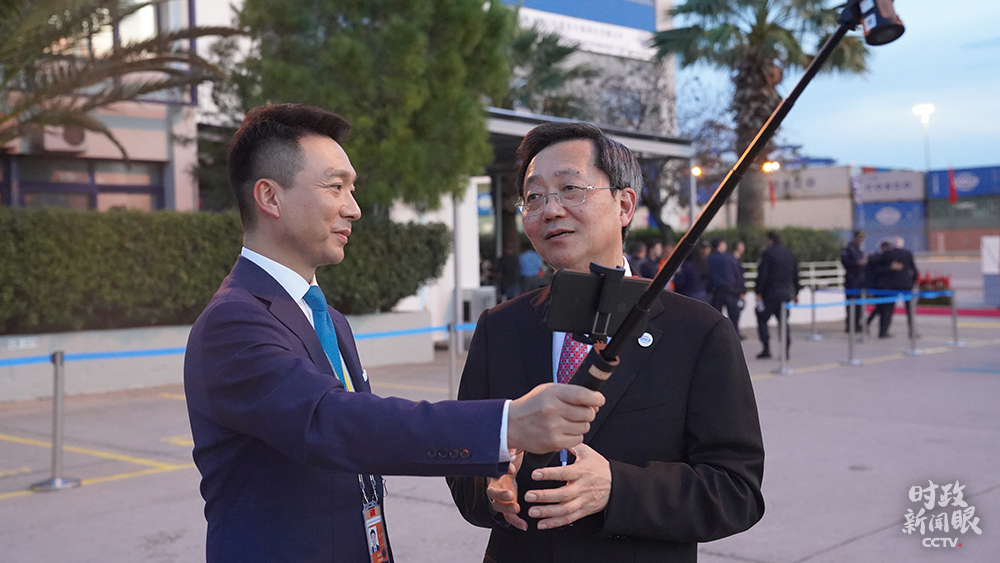 △《康辉@大国外交最前线》正在现场采访刚刚给习主席做完汇报的中远海运董事长许立荣。