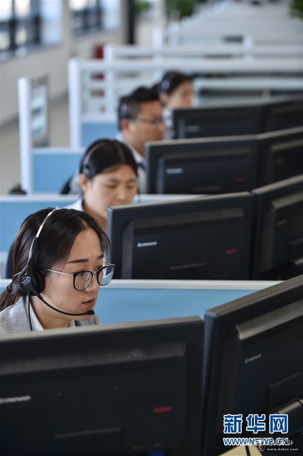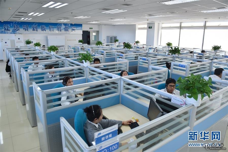 11月13日,在位于北京亦庄的12345市民热线话务大厅,工作人员在接听热线电话。新华社发(彭子洋摄)