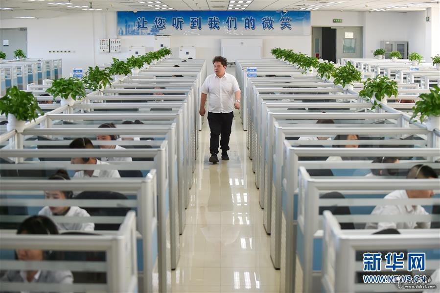 11月13日,当班组长在位于北京亦庄的12345市民热线话务大厅里巡视。新华社发(彭子洋摄)