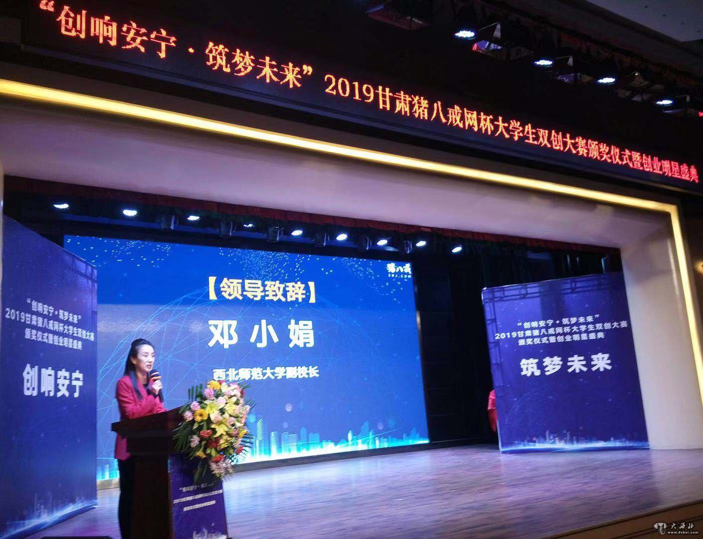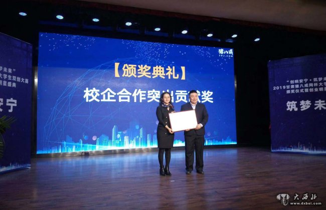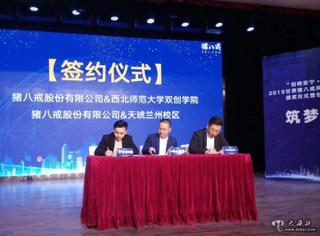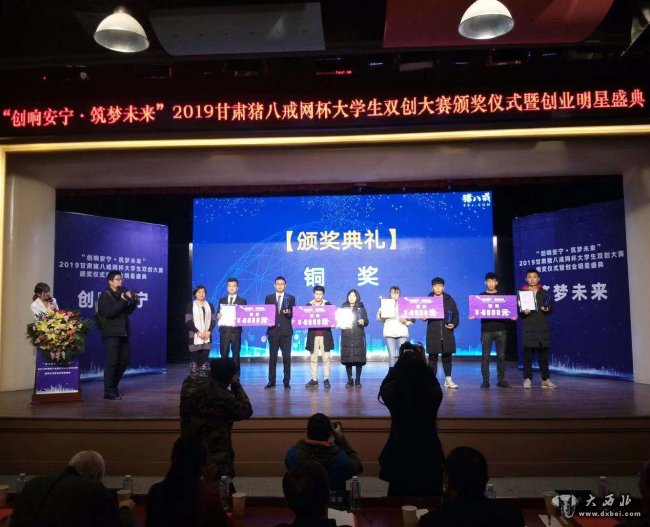 鑫报/大 西 北 网 讯 (记者张小燕)12月19日,“创响安宁·筑梦未来”2019甘肃猪八戒网杯大学生双创大赛颁奖仪式暨创业明星盛典在西北师范大学隆重举行。共颁发优秀组织奖、校企合作突出贡献奖、校园大使奖、创业明星奖、优秀奖、铜奖、银奖、金奖奖项六项,项目“萌启未来”服务平台、“新青年”的专业探索与实践获得金奖。西北师范大学校园工场、天琥校园工场签约揭牌。