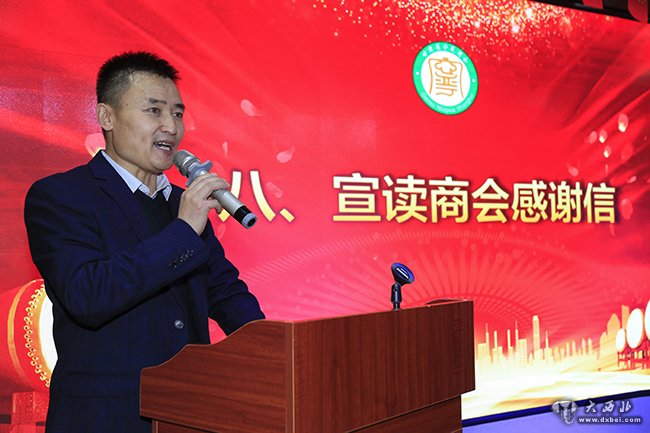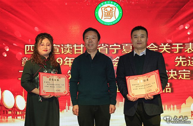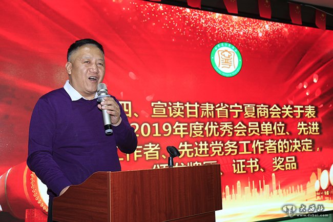 甘肃省宁夏商会党支部书记、常务副会长窦亨亮宣读表彰先进的决定。 贾笑云 摄
