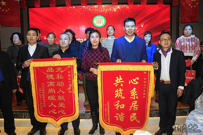 甘肃省宁夏商会成立以来,始终把回报社会、救灾扶贫、热心奉献公益事业作为应尽的社会责任。本次活动商会联手城关区工商联,邀请了城关区雁园路街道、青白石街道10户困难家庭来到联谊会现场,与大家欢聚一堂,共庆佳节。城关区工商联主席马慧慧,宁夏商会副会长陈鑫森、李圣杰、袁强向困难家庭赠送了慰问金慰问品,两个街道向商会赠送了锦旗。