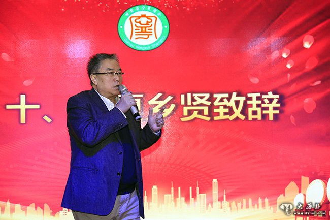 乡贤代表丁光明在年会上发言。 贾笑云 摄