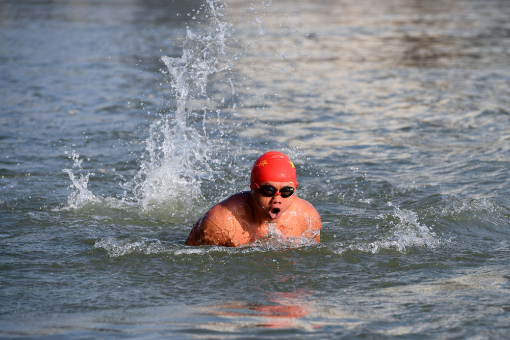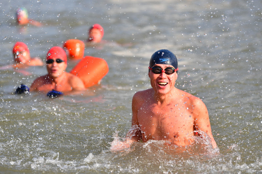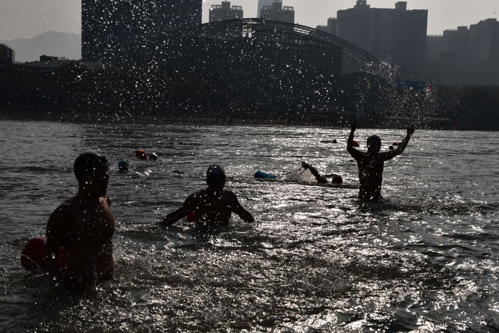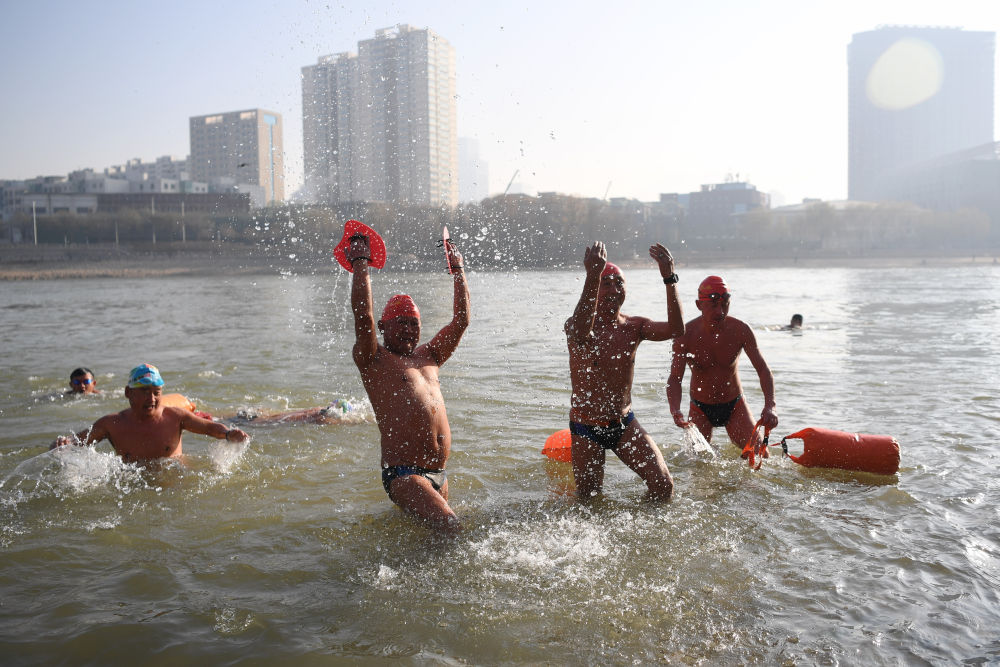 平均年龄45岁,最大年龄88岁,每次入水至少300秒,顺流而下游1000米......波浪、漩涡、泥沙、低温从来没有吓到这些黄河“泳”士,他们在岸边做好拉伸,掬一把黄河水擦擦胸口和脖子,便纵身入水,纵情畅游。“泳”士们冻得赤红的面庞、呼出的滚滚热气与溅起的阵阵水花,让浩浩汤汤的黄河水升腾起万丈豪情与酣畅。