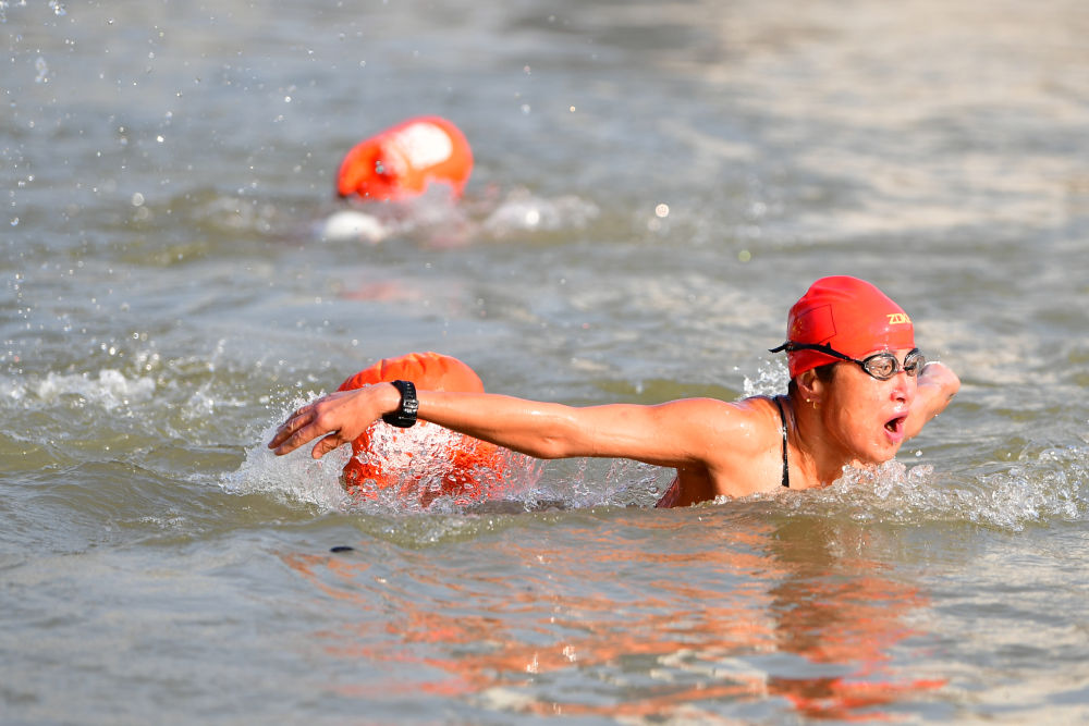 12月19日,冬泳爱好者李彦茹在黄河冬泳。新华社记者陈斌摄