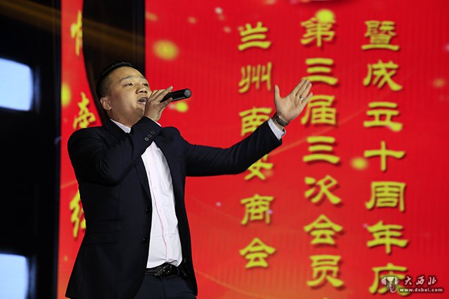 兰州南安商会第三届领导班子成员一起合唱《爱拼南安人》。 贾笑云 摄