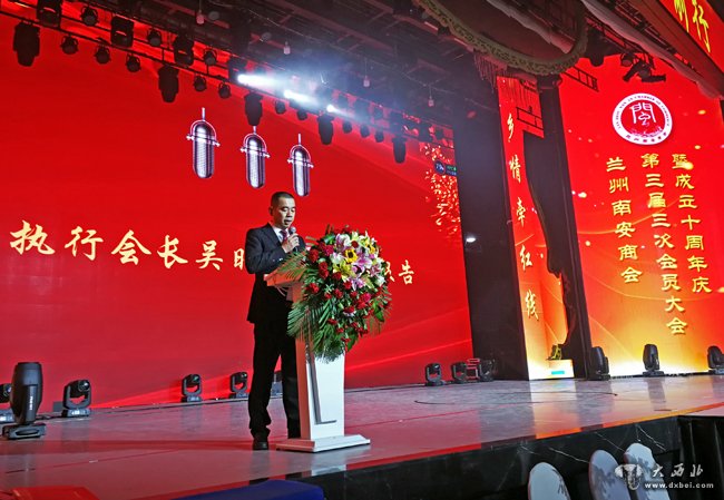 兰州南安商会执行会长吴昭愉作商会工作报告。