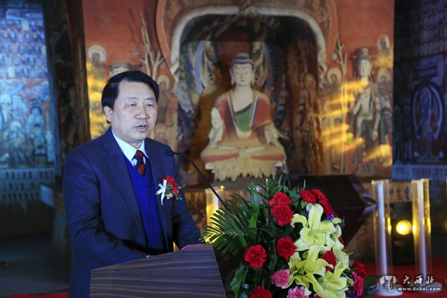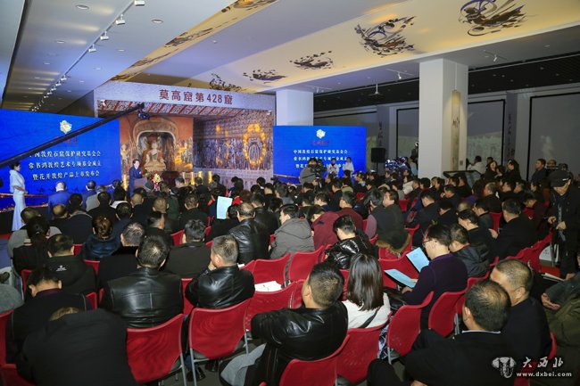大 西 北 网 讯(孙雅彬 文 贾笑云 图) 1月8日,中国敦煌石窟保护研究基金会常书鸿敦煌艺术专项基金成立暨花开敦煌文化礼宾酒上市发布会在敦煌研究院兰州分院隆重举行。