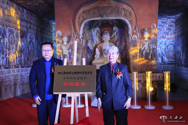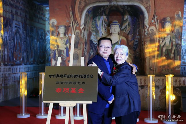 常书鸿女儿常沙娜与敦煌研究院副院长罗华庆为敦煌艺术专项基金揭牌