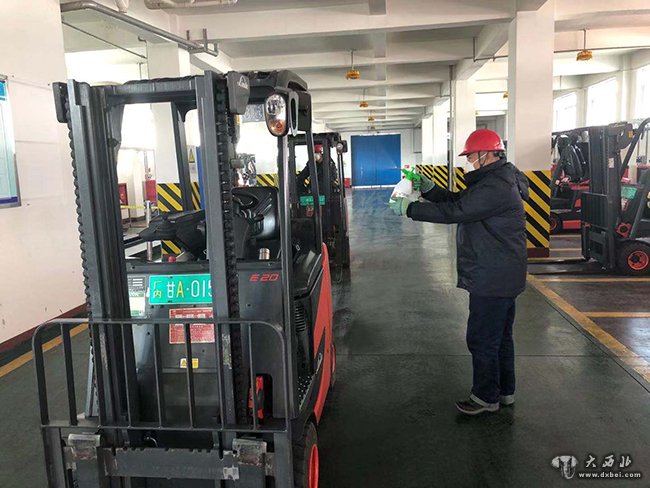 “各班用84消毒水,接班后给班组休息室、更衣室、叉车方向盘、座椅和环境区域进行消毒。”“个班长配置消毒液时必须穿戴防酸手套。注意安全!”“请各位班长注意了,在给属地消毒时,千万不要把消毒液体喷洒到叉车电控部分,以防烧损。”产品装卸车间的安全学习交流群每天每时刻都会有专管的领导和技术员在提示大家。车间高度重视,落实责任,坚决贯彻落实“疫情就是命令,防控就是责任”,把防控工作作为当前最重要的工作来抓。车间为进一步做好疫情期间的防护工作,用科学的方法应对当前疫情形势,将各项决策部署落到实处,坚决打赢这场阻击战!
