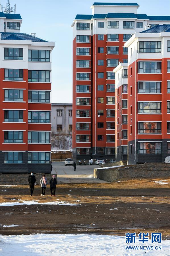 居民在内蒙古乌兰察布市卓资县易地搬迁房福安小区内散步(2020年3月26日摄)。新华社记者连振摄