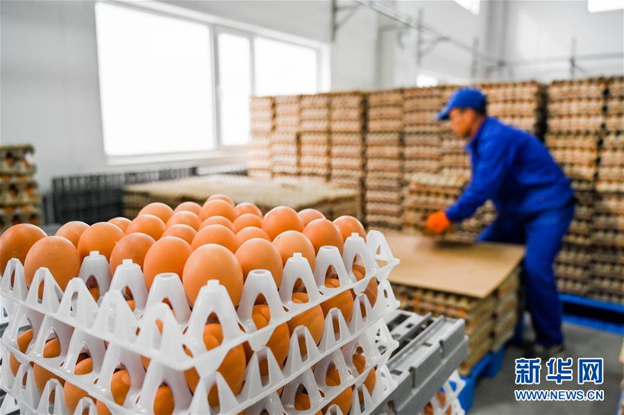 内蒙古乌兰察布市卓资县十八台镇村民在当地金鸡产业园区厂房内分拣鸡蛋(2020年3月26日摄)。新华社记者连振摄