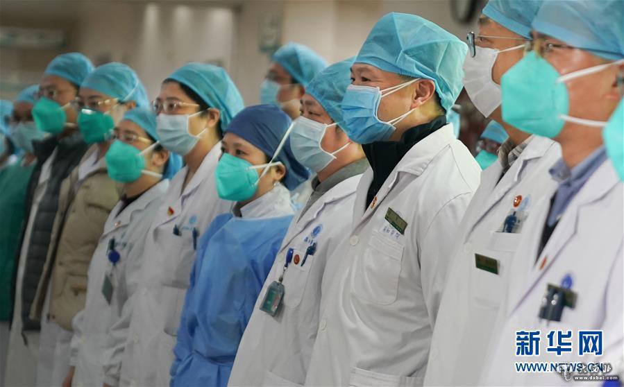 1月22日,华中科技大学同济医学院附属协和医院内科30余名医护人员组成抗击新型冠状病毒感染的肺炎突击队,投入到协和医院对口支持的发热定点医院——武汉红十字会医院的工作中去。新华社记者程敏摄