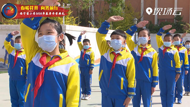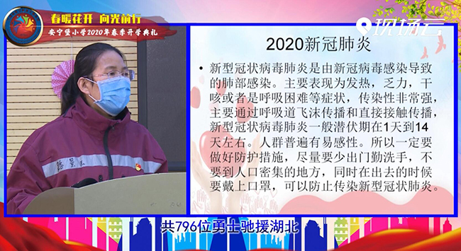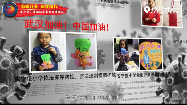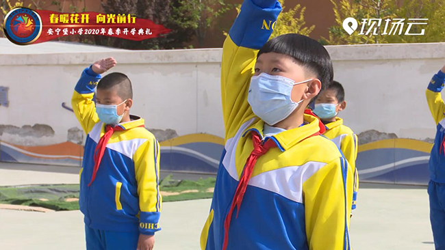 鑫报/大 西 北 网 讯 2020年4月27日,安宁区安宁堡小学举行了“春暖花开向光前行”——2020年春季学期线上开学典礼。仪式现场举行了特殊的升旗仪式,表达对伟大的祖国、对英雄的城市、对负重前行的逆行者的深深敬意。学校还邀请甘肃援鄂医疗队队员路景玉为学生们做了关于“防疫生命教育”主题的报告,为孩子们讲述了在鄂工作期间的所见所闻和感悟,并为孩子们科普了防疫常识。