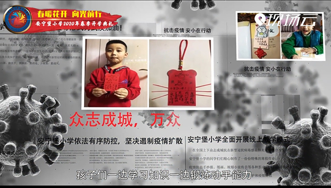 面对突如其来的新冠肺炎疫情影响,安宁堡小学根据上级教育主管部门“停课不停学”的相关要求,统一部署、具体安排,号召广大学子“宅家不宅心隔离不隔情”。在此次开学典礼中,学校采用了成果展播的方式,撷取孩子们居家学习的精彩成果,按照学科教育、实践活动、劳动教育三大板块进行呈现,全面展现了我校“停课不停学”线上教学成果。