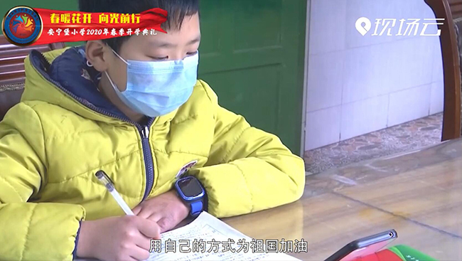 在这场举国上下齐心协力的战役中,我们的党和国家强有力的领导让我们在大灾大难面前团结一心,众志成城,共抗疫情。为了更好地对学生进行爱国主义教育,提升学生的民族自豪感,学校专门邀请了某部队战士为同学们升起新学期第一面五星红旗。五星红旗在校园冉冉升起,雄壮的国歌回荡在操场上空,各班教室里,孩子们注视着屏幕中飘扬的红旗,以最标准的少先队礼表达着自己内心深处对祖国的热爱和依恋。
