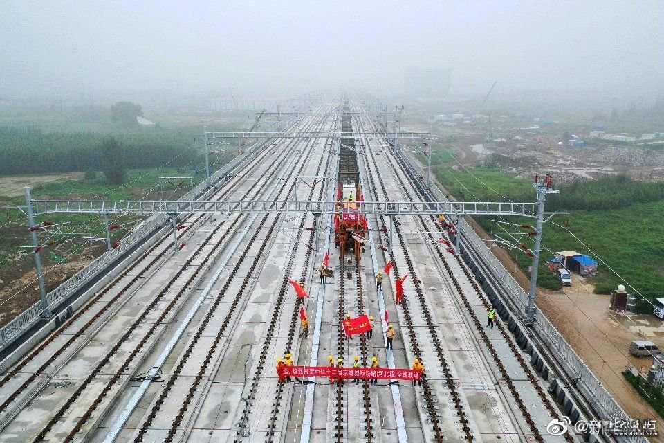 17日上午,中铁十二局将最后一组500米长钢轨固定在位于雄安新区的无砟道床上,标志着我国智能高铁“新标杆”京雄城际铁路全线轨道贯通。京雄城际被认为是世界眼光、国际标准、中国特色、高点定位之下的智能高铁,集中展现了我国铁路智能建造、智能装备、智能运营的最新成果。京雄城际李营至大兴机场段设计时速250公里,已于2019年9月开通运营,大兴机场至雄安段设计时速350公里,预计2020年底开通运营。(记者丁静、邢广利)