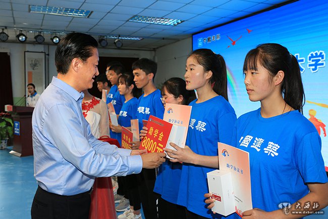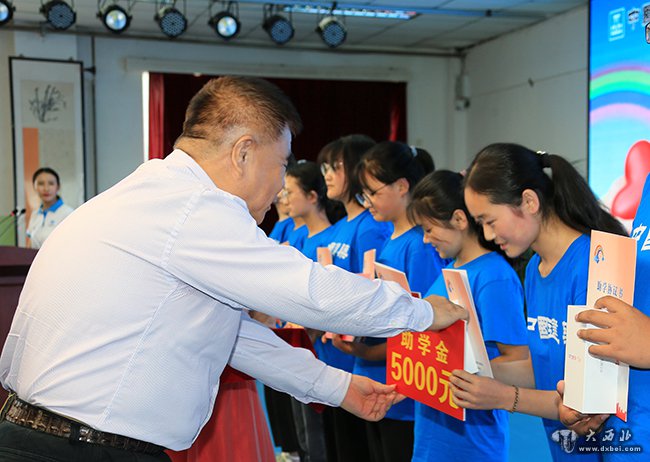 彩虹益路助学活动在康乐一中举行。 贾笑云 摄
