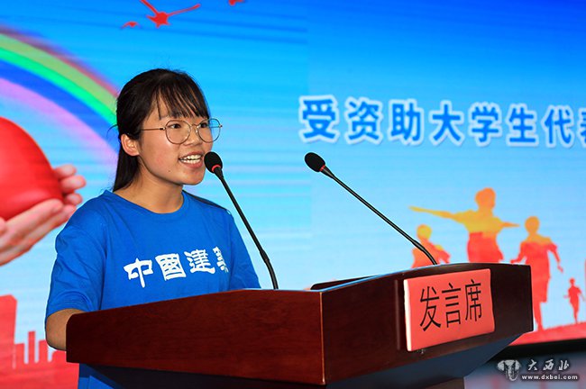 受到资助的准大学生马成芳发言。 贾笑云 摄