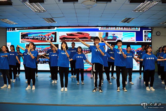 受资助的19名大学生现场合唱了《相亲相爱的一家人》。 贾笑云 摄