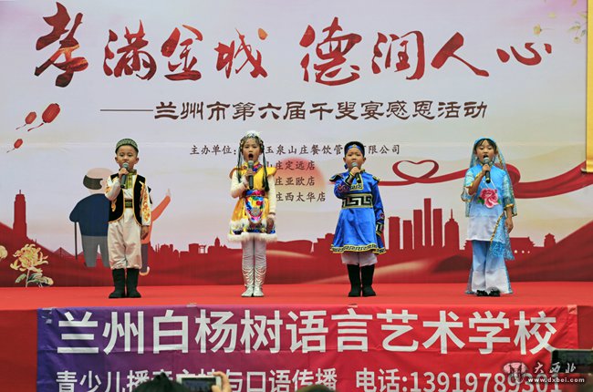 兰州市第六届千叟宴感恩活动开幕式演出诗朗诵。 贾笑云 摄